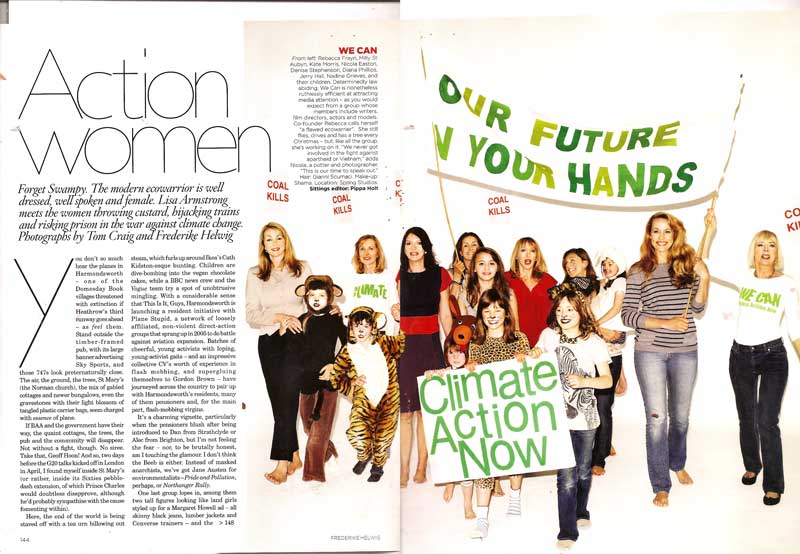 In 2008, Rebecca co-founded WeCan an environmental group who worked to lobby the government in the run up to the Copenhagen Climate Conference in 2009. A consortium of women journalists, filmmakers and artists, the group focused on the 3rd runway at Heathrow and ran a high profile campaign of direct action events and press articles in The Guardian, The Evening Standard, The Telegraph, The Sunday Times and The Mail. They narrowly avoided getting arrested on a number of occasions that included a protest picnic at Heathrow, the storming of the House of Commons on the 100th anniversary of the suffragette’s charge on Parliament and inadvertently closing down the Ministry of Transport when they tried to deliver a paper plane to the Secretary of State for Environment and Transport, Geoff Hoon.